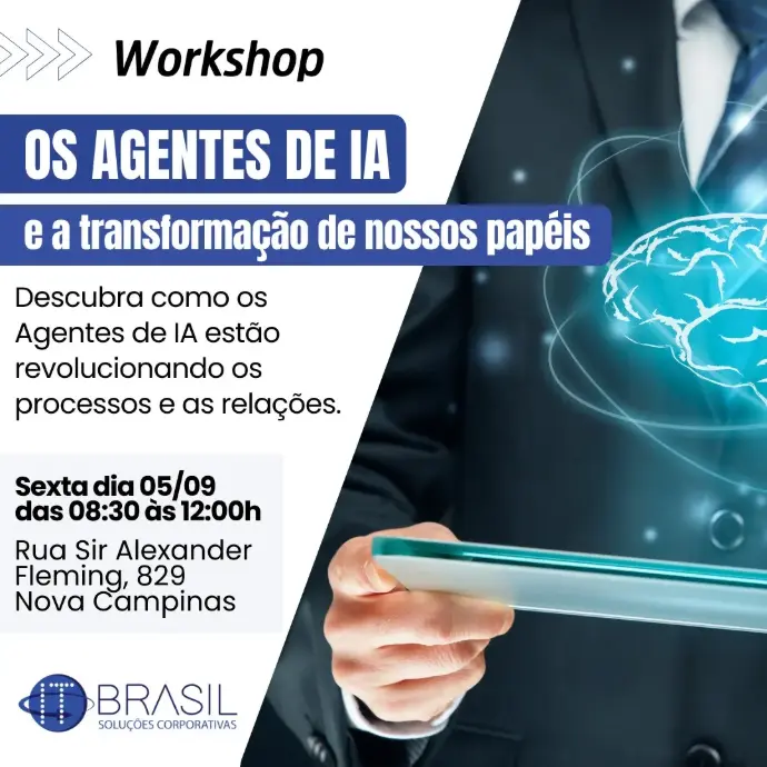 No workshop “Os Agentes de IA e a transformação de nossos papéis”, vamos explorar como a IA funciona nos negócios, como potencializa processos e como impacta diretamente a atuação de cada profissional.